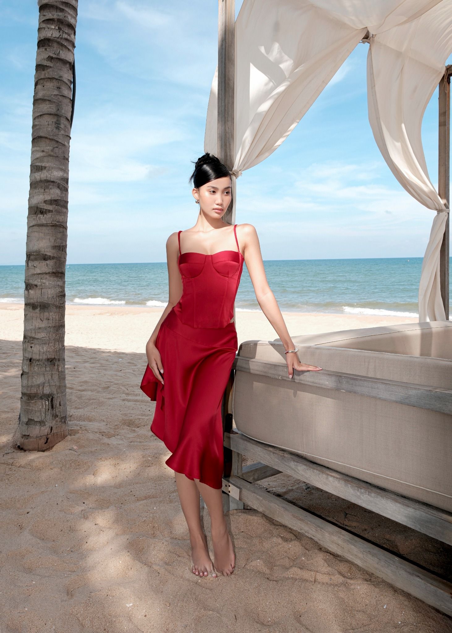 Chất liệu lụa cao cấp cho nàng thêm phần quyến rũ.