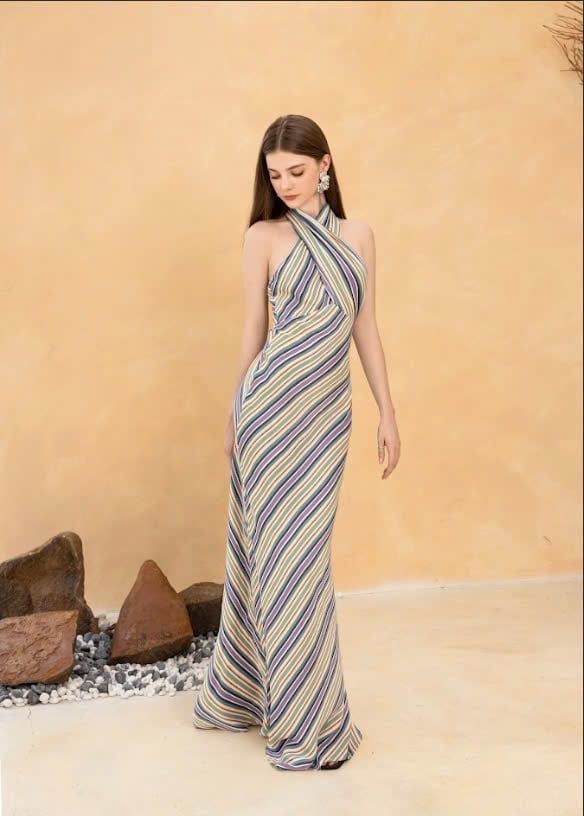 - Thiết kế đầm maxi dài tạo độ thướt tha cùng form dáng chuẩn. Hoạ tiết kẻ sọc kết hợp cùng tông màu ngọt ngào là sự lựa chọn tuyệt vời cho những chuyến đi nghỉ mát sắp tới.