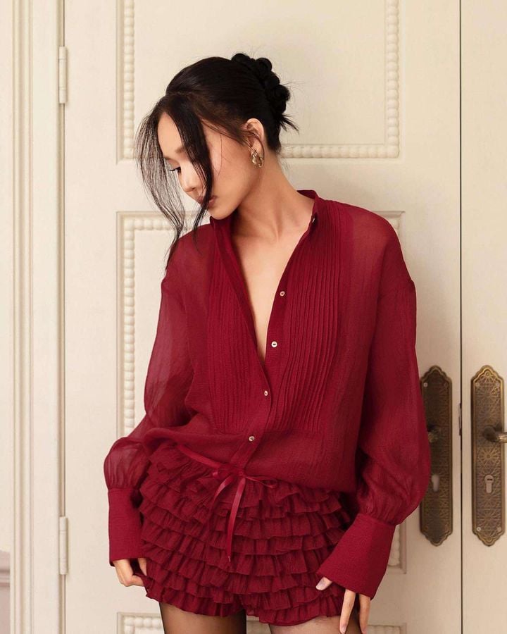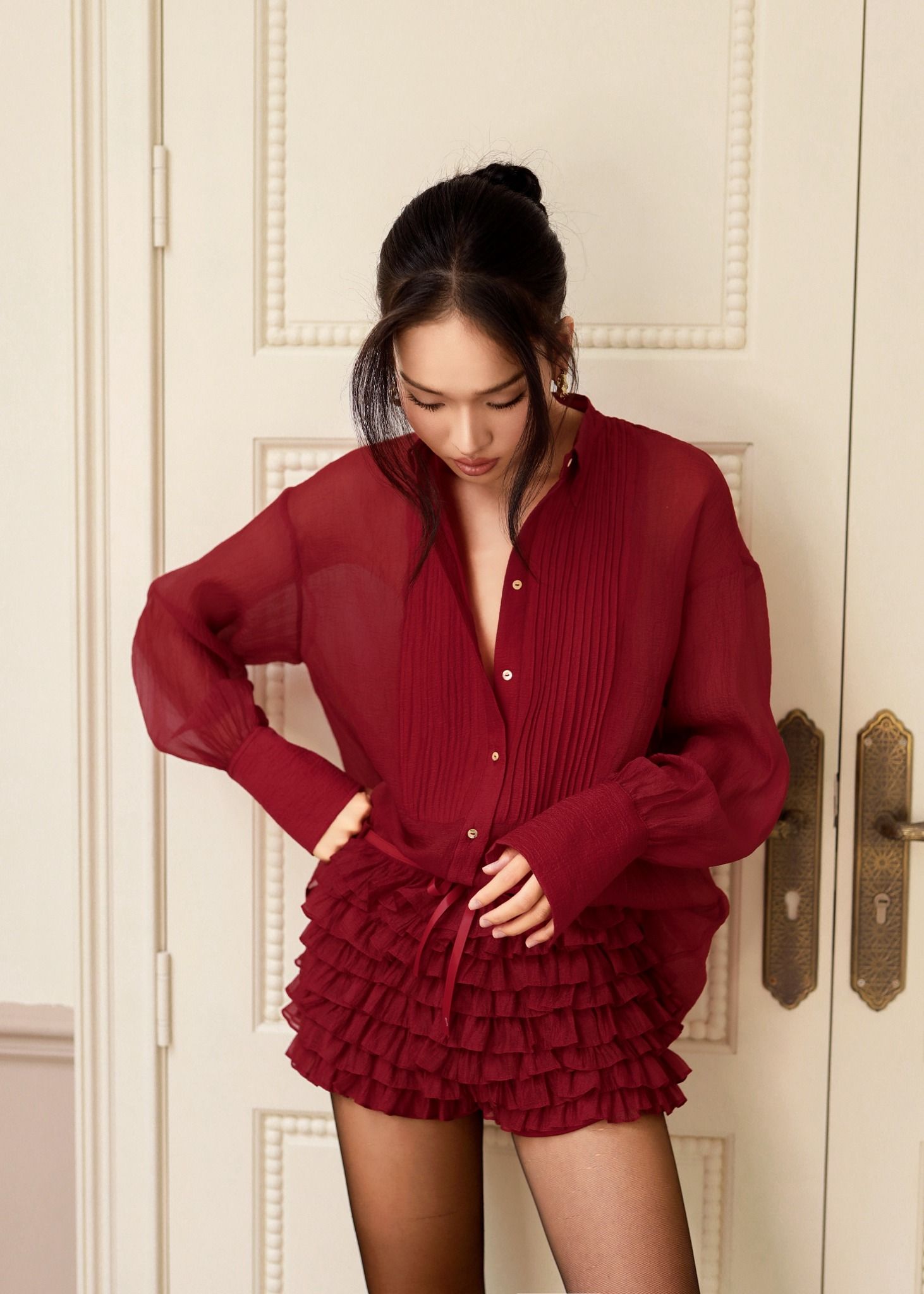 Thiết kế sơ mi được xếp li thủ công tỉ mỉ cùng form dáng oversize thoải mái, trendy dễ phối với nhiều phong cách thời trang khác nhau.