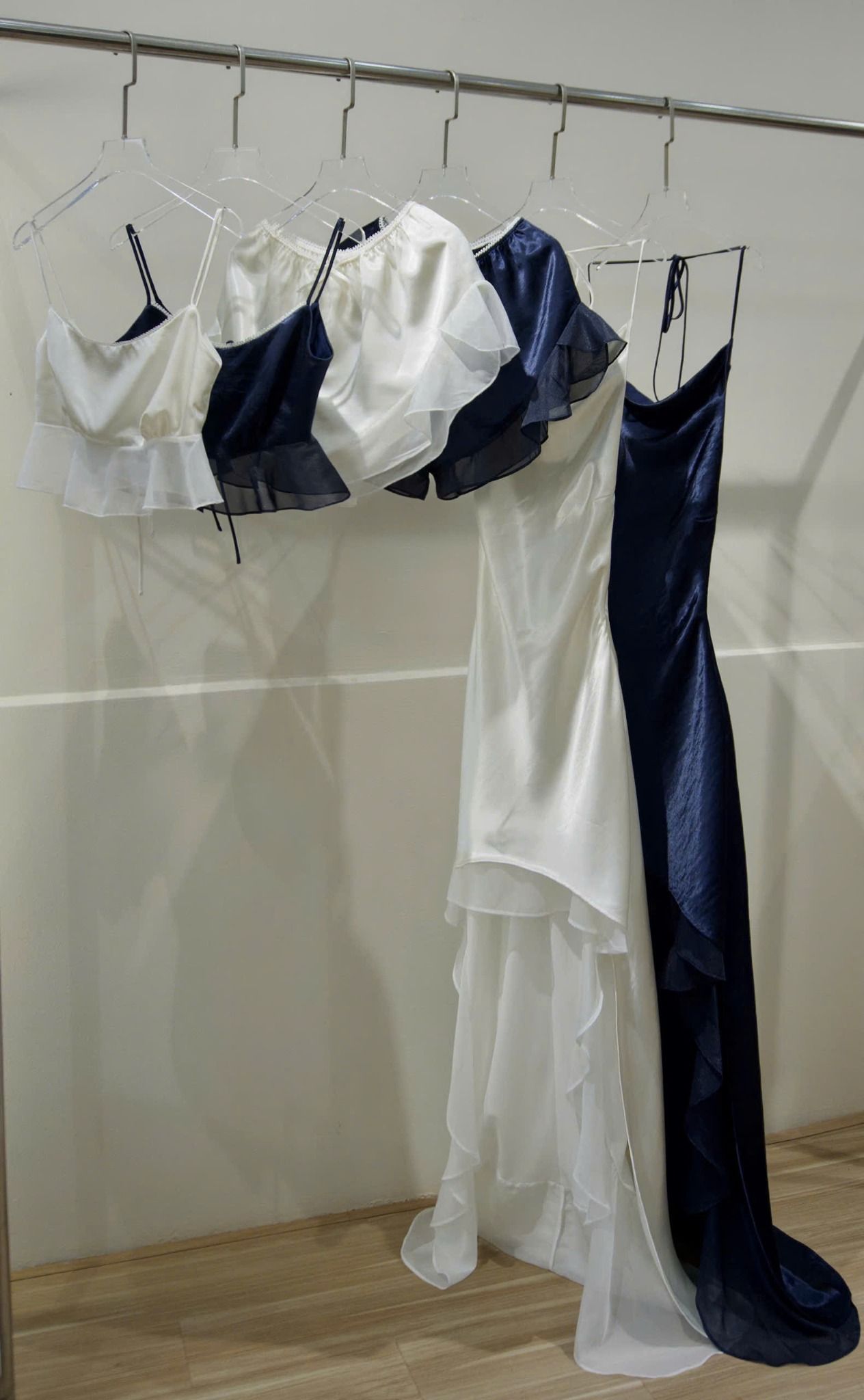 Thiết kế từ chất liệu lụa silk phối tằm ánh.